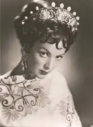 María de los Ángeles Félix Güereña (Spanish: [maˈɾi.a ˈfeliɣs]; 8 April 1914 – 8 April 2002) was a Mexican actress and singer. Along with Pedro Armendáriz and Dolores del Río, she was one of the most successful figures of Latin American cinema in the 1940s and 1950s. Considered one of the most beautiful actresses of the Golden Age of Mexican cinema, her strong personality and taste for finesse garnered her the title of diva early in her career.[3] She was known as La Doña, a name derived from her character in Doña Bárbara (1943), and María Bonita, thanks to the anthem composed exclusively for her as a wedding gift by her second husband, Agustín Lara. Her acting career consists of 47 films made in Mexico, Spain, France, Italy, and Argentina.[4]