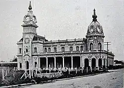 1886–1911: The railway line from Buenos Aires, built by the Buenos Aires Great Southern reached Mar del Plata in 1886; the first hotels started their activity. The upper-class people from Buenos Aires became the first tourists of the new born village. They also established a local government that reflected their conservative ideals. Build-up of a French style resort. On 19 July 1907, the provincial legislature approved a bill that declared Mar del Plata as a city.[5]