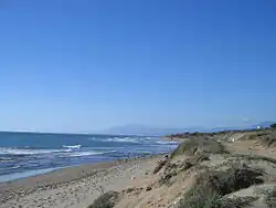 The coast has the Natural Monument site of the Dunas de Artola, one of the few protected natural beaches of the Costa del Sol, which contains marram grass, sea holly, sea daffodils and shrubs, such as large-fruited juniper.[21] The Posidonia oceanica, endemic to the Mediterranean, is found in the Cabopino area, and is an important part of the marine ecosystem around Marbella.[22]