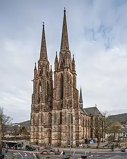 Marburg remains a relatively unspoilt, spire-dominated, castle-crowned Gothic or Renaissance city on a hill partly because it was isolated between 1600 and 1850. Architecturally, it is famous both for its castle Marburger Schloss and its medieval churches. The Elisabethkirche, as one of the two or three first purely Gothic churches north of the Alps outside France, is an archetype of Gothic architecture in Germany.