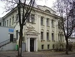 In November 1917, Anatoly Lunacharsky offered Chagall to be in charge of the visual arts department of Narkompros in Petrograd.[78] Chagall refused the offer, mostly due to his disinterest in politics.[79] In the summer of 1918, however, Chagall questioned his refusal[80] and went to visit Lunacharsky in Petrograd.[81] Shortly afterwards the artist was appointed commissar of arts for Vitebsk.[82] This resulted in his founding both the People's Art College, also known as "the Academy",[83] and the Art Museum in Vitebsk.[84][85][86] Under Chagall's leadership, the college attracted major artists such as El Lissitzky[87] and Kazimir Malevich,[88], while the creation of the museum signified the so called "Vitebsk Renaissance" making the town one of the well-known avant-garde centers of the early 20th century.[89] He also hired his first teacher, Yehuda Pen, to work at the school. Chagall tried to create an atmosphere of a collective of independently minded artists, each with their own unique style. However, this would soon prove to be difficult as a few of the key faculty members preferred a Suprematist art of squares and circles, and disapproved of Chagall's attempt at creating "bourgeois individualism". In May 1920, the Academy was taken over by the suprematists, which led to Chagall's resignation and his departure for Moscow.[90][91] When the suprematists themselves left the Academy, it declined, becoming an ordinary college of applied art.[92] The avant-garde in Russia was then ousted by other artistic trends.[93][94]