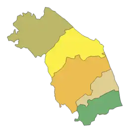 After the referendum of 2006, seven municipalities of Montefeltro were detached from the Province of Pesaro and Urbino to join the Province of Rimini (Emilia-Romagna) on 15 August 2009.[21][22] The municipalities are Casteldelci, Maiolo, Novafeltria, Pennabilli, San Leo, Sant'Agata Feltria and Talamello.