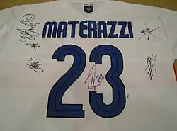 Materazzi was born in Lecce, where his father, Giuseppe, a professional footballer, was playing for US Lecce.[5] Giuseppe was also a former football coach and manager of teams such as Pisa, Lazio, Sporting CP and Tianjin TEDA. Materazzi's mother died when he was 15 years old.[5][118][119] As stated by his father, Materazzi grew up a supporter of Lazio. His brother Matteo is a sports agent.[120][121]