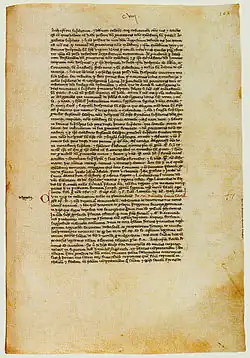 The will was not signed by Polo, but it was validated by the then-relevant "signum manus" rule, by which the testator had only to touch the document to make it legally valid.[62][64] Due to the Venetian law stating that the day ends at sunset, the exact date of Marco Polo's death cannot be determined, but according to some scholars it was between the sunsets of 8 and 9 January 1324.[65] Biblioteca Marciana, which holds the original copy of his testament, dates the testament on 9 January 1324, and it gives the date of his death at some time in June 1324.[64]