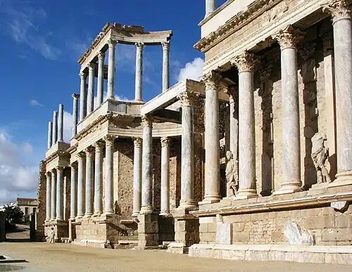 The theatre at Merida, Spain; it was promoted by Agrippa, built between 16 and 15 BC.
