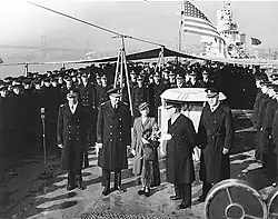 USS Atlanta (CL-104) is christened by Margaret Mitchell Marsh (1944)