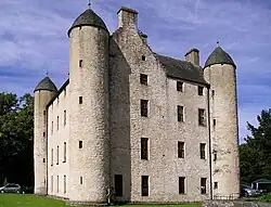 Margaret died at Methven Castle on 18 October 1541, aged 51.[83] Henry Ray, the Berwick Pursuivant, reported that she had palsy (possibly resulting from a stroke) on Friday and died on the following Tuesday. As she thought she would recover she did not trouble to make a will.[84] She sent for King James, who was at Falkland Palace, but he did not come in time. Near the end she wished that the friars who attended her would seek the reconciliation of the King and the Earl of Angus. She hoped the King would give her possessions to her daughter, Lady Margaret Douglas. James arrived after her death, and he ordered Oliver Sinclair and John Tennent to pack up her belongings for his use.[85] As a dowager queen, Margaret had received the rental money of the crown lands of Stirlingshire. After her death, this money was added to the king's income.[86]