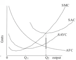 In economics, marginal cost (MC) is the change in the total cost that arises when the quantity produced is increased, i.e. the cost of producing additional quantity.[1] In some contexts, it refers to an increment of one unit of output, and in others it refers to the rate of change of total cost as output is increased by an infinitesimal amount. As Figure 1 shows, the marginal cost is measured in dollars per unit, whereas total cost is in dollars, and the marginal cost is the slope of the total cost, the rate at which it increases with output. Marginal cost is different from average cost, which is the total cost divided by the number of units produced.