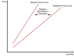 Much of the time, private and social costs do not diverge from one another, but at times social costs may be either greater or less than private costs. When the marginal social cost of production is greater than that of the private cost function, there is a negative externality of production. Productive processes that result in pollution or other environmental waste are textbook examples of production that creates negative externalities.