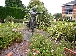 In her hometown of Reigate, a statue created by British sculptor Nathan David in 1980, stands in tribute to Fonteyn. Depicting her in her favourite role of "Ondine", the statue was commissioned by fans worldwide.[139] The main hall in Dunelm House, the Student Union building at the University of Durham, is named the Fonteyn Ballroom in her honour,[140] as is the foyer to the Great Hall of University College, Durham, in Durham Castle.[141] In 2005, Margot's Closet, a dancing apparel and accessory shop, named in homage to Fonteyn, opened in Marietta, Georgia, an Atlanta suburb.[142] The Margot Fonteyn Academy of Ballet established in Peekskill, New York, in 2007 is named in her honour.[143]