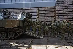Japanese marines from the Amphibious Rapid Deployment Brigade preparing to deploy from USS Ashland