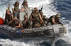 The Iraqi Navy is a small force with 1,500 sailors and 800 marines designed to protect the shoreline and inland waterways from insurgent infiltration. The navy will have coastal patrol squadrons, assault boat squadrons and a marine battalion.[21] The force will consist of 2,000 to 2,500 sailors by 2010.[22]