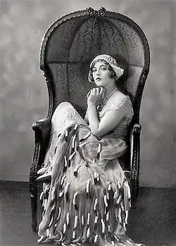 After making her screen debut in 1916, and modelling gowns by Lady Duff-Gordon in a fashion newsreel, Davies appeared in Runaway Romany (1917), her first feature film.[28] Davies wrote the film,[28] which was directed by her brother-in-law, producer George W. Lederer.[29] She continued to alternate between stage and screen until 1920 when she made her last revue appearance in Ed Wynn's Carnival.[22]