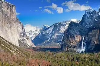 Yosemite Valley in Yosemite National Park, showing El Capitan, Half Dome, and Bridalveil Fall (left to right) Mariposa El Portal Lake McClure Wawona Yosemite Village Glacier Point | |