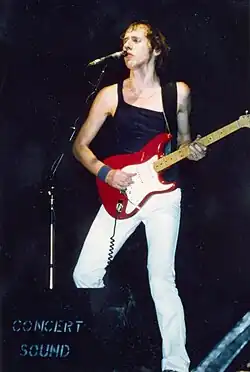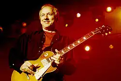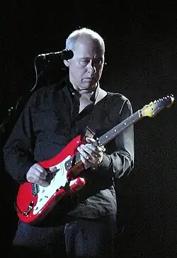 Knopfler was born in Glasgow, and was raised in Newcastle.[1] After graduating from the University of Leeds and working for three years as a college lecturer, Knopfler co-founded Dire Straits with his younger brother, David Knopfler. The band recorded six albums, including Brothers in Arms (1985), one of the best-selling albums in history. After Dire Straits disbanded in 1995, Knopfler began a solo career, and has produced ten solo albums to date.[2] He has composed and produced film scores for nine films, including Local Hero (1983), Cal (1984), The Princess Bride (1987), Wag the Dog (1997) and Altamira (2016).[3] He has produced albums for Tina Turner, Bob Dylan, and Randy Newman.