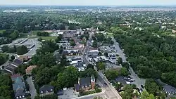 Indigenous people lived in the area of present-day Markham for thousands of years before Europeans arrived in the area.[4] The first European settlement in Markham occurred when William Berczy, a German artist and developer, led a group of approximately sixty-four German families to North America. While they planned to settle in New York, disputes over finances and land tenure led Berczy to negotiate with Simcoe for 26,000 ha (64,000 acres) in what would later become Markham Township in 1794.[5] Since the 1970s, Markham rapidly shifted from being an agricultural community to an industrialized municipality due to urban sprawl from neighbouring Toronto.[6] Markham changed its status from town to city on July 1, 2012.[7]