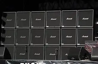 A 3 × 6 stack of Marshall ModeFour guitar cabinets on the main stage of Tuska Open Air Metal Festival in 2008. This setup belonged to Jeff Hanneman of Slayer.