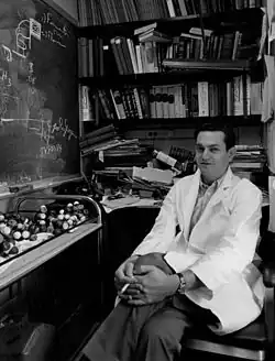 Nirenberg was born in New York City to a Jewish family, the son of Minerva (Bykowsky) and Harry Edward Nirenberg, a shirtmaker.[3][4] He developed rheumatic fever as a boy, so the family moved to Orlando, Florida to take advantage of the subtropical climate. He developed an early interest in biology. In 1948 he received his BS degree, and in 1952, a master's degree in zoology from the University of Florida at Gainesville where he was also a member of the Pi Lambda Phi Fraternity.[5] His dissertation for the Master's thesis was an ecological and taxonomic study of caddis flies (Trichoptera). He received his PhD in biochemistry from the University of Michigan, Ann Arbor in 1957, studying hexose uptake in tumor cells with his advisor James F. Hogg.[6]