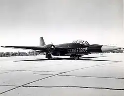 At the outbreak of the Korean War in 1950, the USAF found itself in dire need of an all-weather interdiction aircraft. The existing inventory of piston-engined Douglas B-26 Invaders had been dispatched in this capacity at the very start of the conflict; within a few months in the theatre, the B-26 had suffered a very high rate of attrition and successes with the type were typically limited.[2] The USAF requested that the British government provide a private demonstration of the English Electric Canberra, a newly developed jet-powered bomber. On 17 August 1950, the Canberra demonstration was performed at RAF Burtonwood in Warrington, Cheshire, England; during the following month, a team of US test pilots and engineers visited English Electric's Warton factory to perform a series of flight tests and a detailed technical assessment of the aircraft.[2]