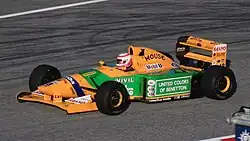 In 1992, Brundle had a productive season, with a strong finish to the year. He came close to a win at Canada, where having overtaken Schumacher and closing on leader Gerhard Berger, the transmission failed.[4] He never outqualified teammate Michael Schumacher, but made up places with excellent starts (sixth to third at Silverstone), outraced the German at Imola, Montreal, Magny-Cours and Silverstone, and scored a notable second place at Monza. At Spa, Brundle went by when Schumacher went off the track. Schumacher noticed blisters on his teammate's tyres on his return to the circuit and came in for slicks, a move that won him the race. Had Brundle not been distracted he would have pitted as planned at the end of that lap, with victory the most likely result.