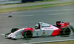For 1994 Brundle was in the frame for the vacant McLaren seat alongside Mika Häkkinen. McLaren were hopeful of re-signing Alain Prost, who had retired at the end of 1993 after winning his fourth championship title, but decided not to renege on his retirement in March, and Brundle got the drive, beating out McLaren test driver Philippe Alliot. He was confirmed less than two weeks before the season-opening 1994 Brazilian Grand Prix.[10]