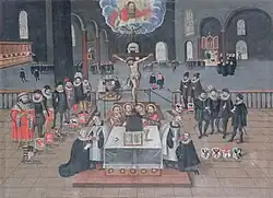 Archbishop Albrecht did not reply to Luther's letter containing the Ninety-five Theses. He had the theses checked for heresy and in December 1517 forwarded them to Rome.[67] He needed the revenue from the indulgences to pay off a papal dispensation for his tenure of more than one bishopric. As Luther later notes, "the pope had a finger in the pie as well, because one half was to go to the building of St. Peter's Church in Rome".[68]