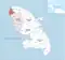 A map of Martinique showing the island's four arrondissements