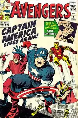 Cover of The Avengers #4 (Mar 1964), featuring the return of Captain America. Art by Jack Kirby.