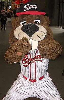 Boomer Beaver (photographed in 2007) was the mascot for the Portland Beavers, a now-defunct Minor League Baseball team.