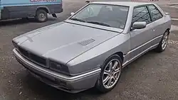 In the early 1990s, a mid-engine sports car prototype was developed, the Maserati Chubasco, which was supposed to be built in 1992, but the project proved very expensive and was shelved. It featured Gandini-designed body, a V8 powertrain, and a backbone chassis. The project was cancelled, as part owner Fiat deemed the project to be too close to Ferrari in the marketplace.[26] Starting in 1990, the entire range of the Biturbo received a facelift designed by Marcello Gandini, on the lines of the Shamal's styling. The last version of the Biturbo coupé was called Racing. It was a transitional model in which several features to be found on the upcoming Ghibli were tested.
