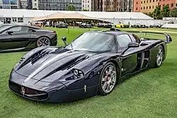 The Maserati MC12 (Tipo M144S) is a limited production two-seater sports car produced by Italian car maker Maserati from 2004 to 2005, to allow a racing variant to compete in the FIA GT Championship. The car entered production in 2004, with 25 cars produced. A further 25 were produced in 2005 after the FIA changed the rules and reduced the maximum length allowed. The second batch of 25 are 150mm shorter than the originals, making a total of 50 cars available for customers.[6][9] With the addition of 12 cars produced for racing, a total of just 62 were ever produced.[10]