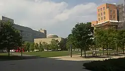 The Kendall/MIT MBTA Red Line station is located on the northeastern edge of the campus, in Kendall Square. The Cambridge neighborhoods surrounding MIT are a mixture of high tech companies occupying both modern office and rehabilitated industrial buildings, as well as socio-economically diverse residential neighborhoods.[116][117] In early 2016, MIT presented a development plan for Kendall Square the City of Cambridge, adding high-rise educational, retail, residential, startup incubator, and office space around the MBTA station. The MIT Museum has moved immediately adjacent to a Kendall Square subway entrance, joining the List Visual Arts Center on the eastern end of the campus.[118]