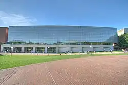 MIT was named a sea-grant college in 1976 to support its programs in oceanography and marine sciences and was named a space-grant college in 1989 to support its aeronautics and astronautics programs.[84][85] Despite diminishing government financial support over the past quarter century, MIT launched several successful development campaigns to significantly expand the campus: new dormitories and athletics buildings on west campus; the Tang Center for Management Education; several buildings in the northeast corner of campus supporting research into biology, brain and cognitive sciences, genomics, biotechnology, and cancer research; and a number of new "backlot" buildings on Vassar Street including the Stata Center.[86] Construction on campus in the 2000s included expansions of the Media Lab, the Sloan School's eastern campus, and graduate residences in the northwest.[87][88] In 2006, President Hockfield launched the MIT Energy Research Council to investigate the interdisciplinary challenges posed by increasing global energy consumption.[89]