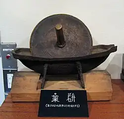 In Japan, matcha became an important item at Zen monasteries and was highly valued by the upper classes from the 14th to the 16th centuries. Until the 13th century, matcha was made by grinding tea leaves with a grinder called a yagen (薬研), but the particles were rough and coarse in texture. In the 14th century, however, a stone mill specialized for tea appeared, producing finer powder and improving the quality of matcha.[50]