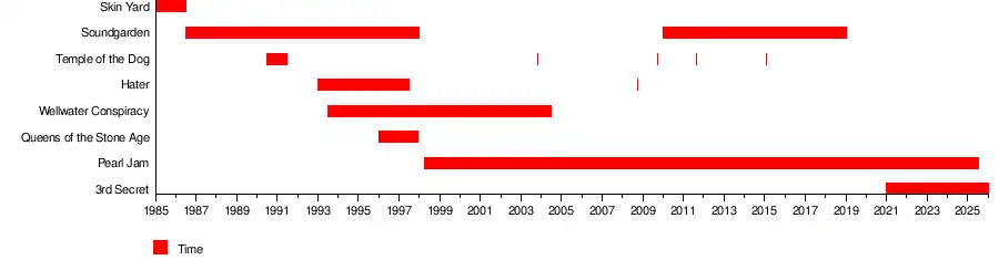 Matthew David Cameron (born November 28, 1962) is an American drummer from San Diego, California.[2][3] He is most known for his work with the Seattle-based rock bands Soundgarden and Pearl Jam.