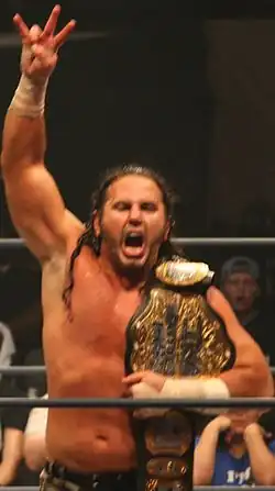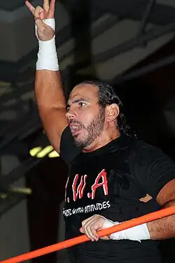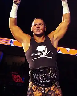 Matthew Moore Hardy (born September 23, 1974) is an American professional wrestler and actor. He is signed to Total Nonstop Action Wrestling (TNA), where he is one-half of the TNA World Tag Team Champions in his fourth reign. He also appears in partner promotion WWE on its NXT brand, where he is a former one-time NXT Tag Team Champion. He is also known for his tenure in All Elite Wrestling (AEW). He is also one-half of the HOG Tag Team Champions.