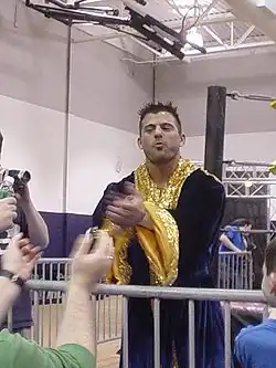 After training with Johnny Rodz, Kaye began working on the American independent circuit.[3] While working full-time as a teacher in 2004, he continued to wrestle during his vacation time and weekends, while also using sick days.[2] Striker trained and worked the northeast independent circuit with notable stablemates Ricky Vega and Tim Arson. On December 16, 2004, Striker began a tour of Japan with Pro Wrestling Zero1 and was later invited back for an extended tour in early 2005.[5] After resigning from his teaching position, he continued to wrestle around New York, and on April 30, 2005, won the New York Wrestling Connection (NYWC)'s Heavyweight Championship by defeating Mike Mondo.[2][6] A few weeks later, on May 21, while still the Heavyweight Champion, he defeated Joey Braggiol to win the NYWC Interstate Championship, but only held the championship for two weeks, before losing it back to Braggiol on June 4.[2][7] He made a few appearances for Ring of Honor in mid-2005, before returning to NYWC to lose the Heavyweight Championship to Jerry Lynn on July 30, after holding it for four months.[2][6] He continued to wrestle for independent promotions throughout mid-2005, until he signed a contract with WWE.[2]