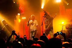 In 2002, Nykänen made a comeback as a singer and released the single "Ehkä otin, ehkä en" ("Maybe I took [it], maybe I didn't"). He also gave his name to a cider brand with the same advertisement slogan.[26] In 2006 Nykänen released his third studio album Ehkä otin, ehkä en (Maybe I took it, maybe I didn't).[27] During most of his musical career, Nykänen worked with professional musician Jussi Niemi. Nykänen toured Finland performing two to three times a week with the Samurai ensemble led by Niemi.[28]