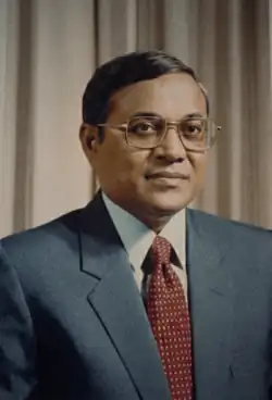 In 1974, Gayoom was appointed undersecretary and later became director of the government telecommunications department.[20] Later that year, he was appointed special undersecretary in the office of prime minister Ahmed Zaki.[21] The position ended in March 1975 when Zaki was removed from office, and the prime minister's role was abolished. Gayoom then spent time in Colombo before returning to the Maldives, where he was appointed deputy ambassador to Sri Lanka.[20][22] In 1975, he became undersecretary at the Department of External Affairs.[20]