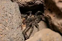 Wēkiu bugs feed on dead insect carcasses that drift up Mauna Kea on the wind and settle on snow banks. This is a highly unusual food source for a species in the genus Nysius, which consists of predominantly seed-eating insects. They can survive at extreme elevations of up to 4,200 m (13,780 ft)[64] because of natural antifreeze in their blood. They also stay under heated surfaces most of the time. Their conservation status is unclear, but the species is no longer a candidate for the Endangered Species List; studies on the welfare of the species began in 1980. The closely related Nysius aa lives on Mauna Loa. Wolf spiders (Lycosidae) and forest tent caterpillar moths have also been observed in the same Mauna Kea ecosystem; the former survive by hiding under heat-absorbing rocks, and the latter through cold-resistant chemicals in their bodies.[65] Several native moths are also present near the summit including Agrotis helela and Agrotis kuamauna.