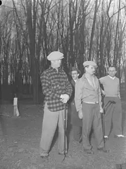 In 1942, Chevalier was named on a list of French collaborators with Germany to be killed during the war, or tried after it.[18] That year he moved to La Bocca, near Cannes, but returned to the capital city in September. In 1944 when Allied forces freed France, Chevalier was accused of collaboration.[3] The 28 August 1944, issue of Stars and Stripes, the daily newspaper of U.S. armed forces in the European Theater of Operations, reported in error that "Maurice Chevalier Slain By Maquis, Patriots Say". Even though he was acquitted by a French convened court, the English-speaking press remained hostile and he was refused a visa for several years.[16] In a review of the 1969 Oscar-nominated documentary film about French collaboration Le chagrin et la pitié (The Sorrow and the Pity), Simon Heffer draws attention to "a clip of Maurice Chevalier explaining, entirely dishonestly, to an anglophone audience how he had not collaborated."[19]