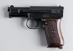 This was a small pocket pistol chambered for .32 ACP (7.65 mm) based on the earlier Model 1910/14. The Mauser Model 1934 is virtually identical to the 1914 except for the grip, which has a more curved back. It was used by the Kriegsmarine and was also sold commercially.