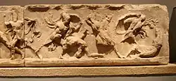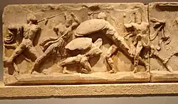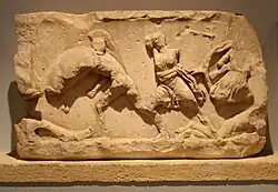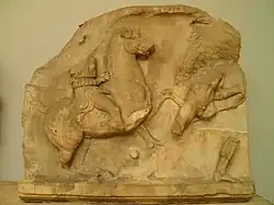 Slab from the Amazonomachy believed to show Herculeas grabbing the hair of the Amazon Queen Hippolyta. -