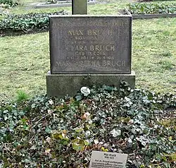 Bruch died in his home in Berlin-Friedenau in 1920. He was buried next to his wife Clara, who had died on 26 August 1919, at the Old St. Matthäus churchyard at Berlin-Schöneberg. Margaretha Bruch later had carved on the gravestone, "Music is the language of God."[7]