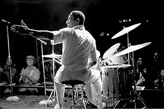 In 1966, with his album Drums Unlimited (which includes several tracks that are entirely drum solos) he demonstrated that drums can be a solo instrument able to play theme, variations, and rhythmically cohesive phrases. Roach described his approach to music as "the creation of organized sound."[14] Roach's style has been a big influence on several jazz and rock drummers, most notably Joe Morello,[30] Tony Williams,[31] Jack DeJohnette,[32] Peter Erskine,[33] Billy Cobham,[34] Ginger Baker,[35] and Mitch Mitchell.[36] The track "The Drum Also Waltzes" was often quoted by John Bonham in his Moby Dick drum solo and revisited by other drummers, including Neil Peart and Steve Smith.[37][38] Bill Bruford performed a cover of the track on the 1985 album Flags.