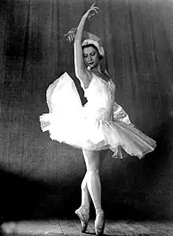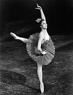 Plisetskaya's most acclaimed roles included Odette-Odile in Swan Lake (1947) and Aurora in Sleeping Beauty (1961). Her dancing partner in Swan Lake states that for twenty years, he and Plisetskaya shared the world stage with that ballet, with her performance consistently producing "the most powerful impression on the audience".[24]