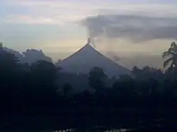 Mayon (Central Bikol: Bulkan Mayon; Tagalog: Bulkang Mayon, IPA: [mɐ'jɔn]), also known as Mount Mayon and Mayon Volcano, is an active stratovolcano in the province of Albay in Bicol, Philippines. A popular tourist destination, it is renowned for its "perfect cone" owing to its symmetric conical shape, and is regarded as sacred in Philippine mythology.[5]