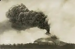 Its most destructive recorded eruption occurred on February 1 (VEI=4).[15][18] Lava flowed but less than the 1766 eruption. The volcano belched dark ash and eventually bombarded the town of Cagsawa with tephra that buried it.[15][18] Trees burned, and rivers were certainly damaged. Proximate areas were also devastated by the eruption, with ash accumulating to 9 m (30 ft) in depth. In Cagsawa town, about 1,200 locals perished in what is considered to be the most lethal eruption in Mayon's history according to PHIVOLCS.[15][18] The 1814 eruption is believed to have contributed to the accumulation of atmospheric ash together with the catastrophic 1815 eruption of other volcanoes like Indonesia's Mount Tambora, leading to the Year Without a Summer in 1816.[19]