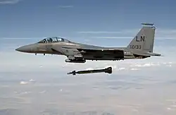 The F-15E's deep-strike mission is a radical departure from the original intent of the F-15 since it was designed as an air-superiority fighter under the mantra "not a pound for air-to-ground."[35] The basic airframe, however, proved versatile enough to produce a very capable strike fighter. The F-15E, while designed for ground attack, retains the air-to-air lethality of the F-15, and can defend itself against enemy aircraft.[36]