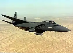 The F-15E was first delivered to the U.S. Air Force operational units in 1988.[3] The F-15E reached initial operational capability on 30 September 1989 at Seymour Johnson Air Force Base in North Carolina with the 4th Tactical Fighter Wing, 336th Tactical Fighter Squadron.[4]